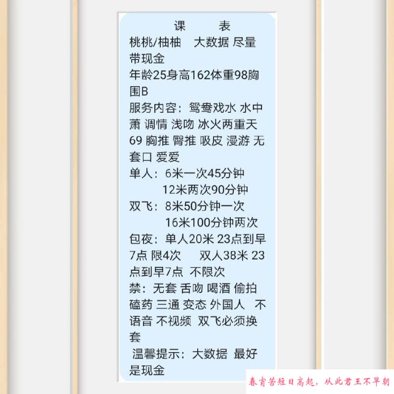 【服务项目】:鸳鸯浴,舌吻,按摩,胸推,爱爱